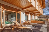 Внешняя отделка дома сделана лучшими специалистами своего дела по всем традициям стиля «Шале». Деревянные фасады и качественно выложенный цоколь природным камнем являются изюминкой стиля. Вся придомовая территория зеленая и частично выложена природным камнем, засажена кустарниками и полукустарниками.