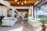 Архитектура дома идеально вписывается в общий ансамбль застройки и естественный природный пейзаж. Общая его площадь составляет 220 квадратных метров, а участка, на котором он расположен – 11 соток.