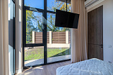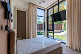 На втором этаже расположена просторная мастер-спальня с гардеробной и собственной ванной комнатой, а также две дополнительные жилые комнаты с собственными санузлами и доступом на балкон.