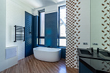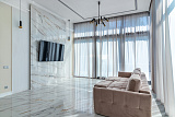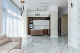 Экстерьер этого элитного дома поражает исключительной красотой и безупречным стилем. Фасад из комбинированного керамогранита и мраморной крошки придает ему неповторимое очарование. А алюминиевые окна фирмы Алюмил обеспечивают идеальное сочетание эстетики и функциональности.