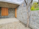 Дом построен в стиле хай-тек, который отличает лаконичность и строгость фасадных линий. Один этаж – большое преимущество для людей, которые ценят личный комфорт. Чтобы пройти в спальню или на кухню не нужно бегать по лестницам, все находится на одном уровне.