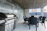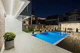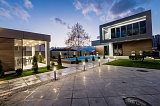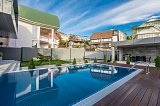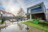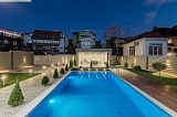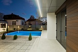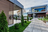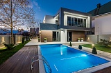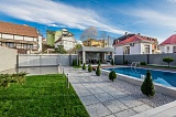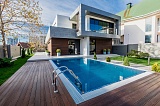 Во дворе дома раскинулся бассейн с системой подогрева воды и противотоком. Восхищает качество проведенных ландшафтных работ и оборудования мест, предназначенных для отдыха.