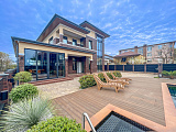 Здание возведено на прочном свайном фундаменте, с монолитным каркасом, что гарантирует надёжность конструкции. Планировочное решение ориентировано на семейный формат: предусмотрено 5 спален, просторные зоны общего пользования и технические помещения.