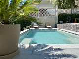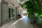 Границы территории обозначены кованым забором. От посторонних глаз сам дом надежно скрывает зеленый массив субтропических деревьев.