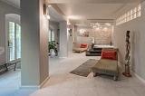 Внутри дома выполнен дорогостоящий дизайнерский ремонт, покоряющий своей безупречной эстетикой и роскошью. В оформлении пространства продумана каждая мелочь, начиная от выбора отделочных материалов, заканчивая фурнитурой и домашним текстилем.