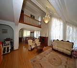 Общая площадь дома – 400 кв.м. Внутри выделено несколько изолированных спальных комнат, кладовые, гардеробные и т.д. Сердце дома – это большой зал со вторым светом и выходом на просторную террасу. Факт полной готовности этого дома для жизни достигается выполненным внутри ремонтом и наличием абсолютно всей мебели и техники. Интерьер оформлен в нарядного и величественного, но в то же самое время, очень элегантного стиля, сочетающего в себе изящный классицизм и барокко. Все предметы декора, а также мебель, техника и текстиль подбирались в соответствии с общим концептом, за счет чего интерьер приобретает по-настоящему гармоничный, стильный и очень оригинальный облик!