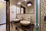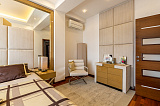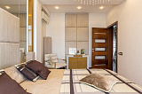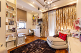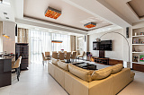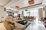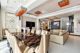 Сантехническое оборудование от Simas и Bongo, мебель от Dedar, Rivolta, Capitale (Италия), текстиль от Hermes, Colony. В гостиной установлен камин от Flat с облицовкой из натурального оникса. Здесь на самом деле продумывалась каждая деталь – от цвета отделочных материалов до фактуры текстиля.