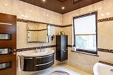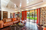 Что заслуживает отдельного внимания, так это умопомрачительный интерьер, способный свести с ума даже самых искушенных и привередливых эстетов. В отделке использованы дорогие материалы, что только подчеркивает статус дома, его престиж.