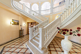 В роскошном здании, занимающем три этажа общей площадью 1200 кв. м, трудно найти то, чего не хватает для роскошной жизни. Здесь можно проводить многолюдные праздники и найти условия для полного уединения. Для разного рода мероприятий идеально подойдет огромный зал. Кухня, расположенная в цокольном этаже, готова обслужить любое количество гостей, доставляя приготовленные блюда с помощью специального лифта.