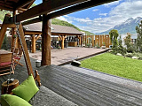 Уединенное трёхэтажное шале из отборного кедра на высоте 780 метров над уровнем моря — это воплощение альпийского шарма и современного комфорта. Пространство в 500 м² продумано до мелочей: от панорамных видов на Кавказские горы до аутентичного декора, привезенного из самых живописных уголков мира.