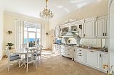 Отделка заслуживает отдельного внимания. Интерьер особняка выполнен в лучших традициях роскошного классицизма, дополненного элементами ар-деко и барокко. Должным вниманием обеспечена каждая деталь: от выбора мебели до фурнитуры и домашнего текстиля. Внутри – шикарная лестница с коваными перилами ручной работы.