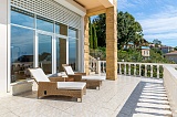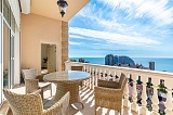 Еще одна отличительная особенность дома – террасы на каждом уровне. Из окон комнат открывается прекрасный обзорный вид на морскую акваторию и панораму курортного микрорайона. Много зелени.