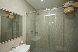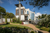 Общая площадь дома — 600 м2, участок — 8 соток ИЖС. С балконов, террас и даже из спальни открываются живописные панорамы на море и горы. Территория виллы спланирована и оформлена с настоящим вкусом: от подогреваемого бассейна и зоны СПА до спортивного зала и эксплуатируемой кровли с видом, который сложно переоценить.