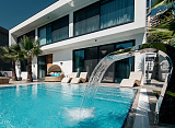 Во дворе особняка находится собственный бассейн. Абсолютно ровный земельный участок с красивым ландшафтным дизайном. Для Сочи это большая редкость. Также на территории есть гараж для 2 автомобилей, зоны для отдыха и принятия солнечных ванн.