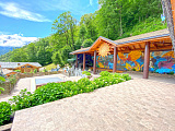 Предлагаем Вашему вниманию самую роскошную резиденцию в Красной Поляне и одну из лучших в городе Сочи. Шикарное домовладение состоящее из двух кедровых срубов вывезенных из заповедных районов Алтая и собранных истинными мастерами своего дела, Русской бани с купелью, бассейном с подогревом. Каждый сруб имеет четыре-пять спален, гостиную с расписными каминами, кухню-столовую с террасой находясь на которой Вы сможете любоваться величием Кавказских гор и главного хребта Красной Поляны- Аибга. Просторный действительно приватный участок площадью 45 соток граничит с национальным парком и прекрасно обустроен, выполнено ландшафтное озеленение, дизайн входной группы выполнена в духе Русских Сказок.