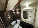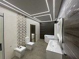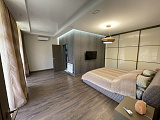 Просторная спальная комната общей площадью (22м2). Большой совмещенный санузел (6м2). А так же зона Open-space (70м2), где расположился кабинет, своя библиотека и места для хранения.