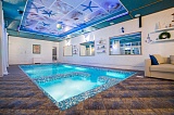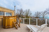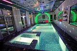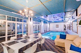 Дом располагает собственным бассейном, сауной и купелью с проточной водой. На прилегающей территории выполнен ландшафтный дизайн, здесь же располагается зона для принятия солнечных ванн.
