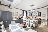 Особняк можно смело рассматривать для проживания больших семей с детьми разного возраста. Внутри выделено несколько изолированных спальных комнат (в том числе детских). Сердце дома – большая гостиная комната, где все домочадцы смогут собраться вместе за просмотром фильма или обсуждением своих дел. Еще одно место для соборов всей семьей – просторная кухня с выделенной столовой зоной.