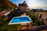 Потрясающий дом в Сочи. Общей площадью 400 кв.м.в трех уровнях. Находится в элитной коттеджном поселке на берегу Черного моря .На южном склоне горы «Благодать» Граничит с Национальным парком. Потрясающей красоты местность, экологически чистый район, великолепные виды на море, Адлерскую бухту с одной стороны а с другой стороны в сочетании с настоящим лесом!. К списку главных достоинств данного предложения в первую очередь стоит отнести развитую инфраструктуру района, удаленность от шумных проезжих частей и оживленных улиц.. Внутренняя отделка выполнена из дорогих материалов: мрамор, натуральное дерево, фактурная штукатурка ручной работы. В санузлах установлена дорогая сантехника. Встроенная кухня со всей бытовой техникой. На территории находится открытый бассейн и отдельно стоящий гостевой домик. На участке 10 соток выполнен ландшафтный дизайн из редких пород тропических вечнозеленых дерев, цветов и кустарников. Дом для изысканных ценителей тончайшей эстетики, и комфорта!