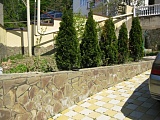 На участке выполнен ландшафтный дизайн. Есть место для стоянки автомобилей, небольшой ухоженный сад.