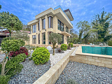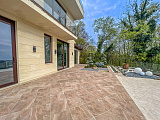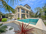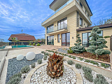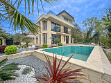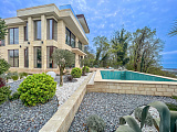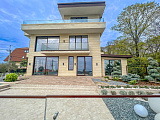 Площадь дома — 260 м2, участок — 7 соток ИЖС с правом собственности. Панорамное остекление обеспечивает прекрасный вид на море и зелёные холмы. Внутреннее пространство спроектировано с учётом комфорта семьи: 4 спальни, 2 кухни-гостиные и полноценная жилая инфраструктура. Коммуникации центральные, что обеспечивает надёжность и простоту эксплуатации.