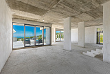 Площадь представленного дома составляет 400 метров. Отсутствие финальной внутренней отделки позволяет покупателям персонализировать пространство по своему личному усмотрению. Это касается как стилистики интерьера, так и зонирования. Однако, сразу отметим, что умопомрачительный вид на морскую акваторию, открывающийся из больших панорамных окон, станет прекрасным дополнением практически к любой стилистической концепции!