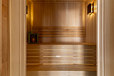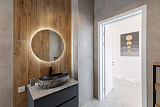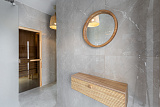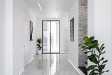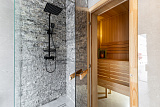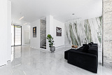 При ремонте применялись строго материалы премиум класса, фасадные панели KMEW, крупноформатный итальянский керамогранит, люстры Bohemia, смесители Allen Brau, душевые перегородки в сауне и доме из противоударного стекла 8мм. Подоконники и лестница выложены итальянским мрамором, чешская люстра высотой 2 метра в лестничном проеме. Так же в доме имеется система умного дома и электро-жалюзи.
