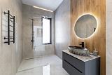 Инженерные системы выполнены с тщательным планированием. Дом стоит на 14 бурозаливных сваях глубиной до 9 метров, слой аргиллита начинается на 5 метрах. Система водоотведения и гидроизоляции, мощные опорные стены, система очистка воды в доме, все выполнено что бы избавить жильцов от лишних проблем во время межсезонья. Система кондиционирования и вентиляции общая для первого и второго этажа, плюс сплит системы в каждой спальне.