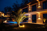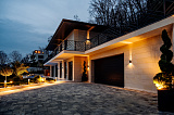 Дом отличается не только внутренним удобством, но и стильным архитектурным решением, которое гармонично дополнено ландшафтным дизайном прилегающей территории. Фасады отделаны песчаником. В темное время суток – очень красивая подсветка, подчеркивающая визуальную эстетику.