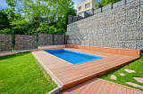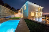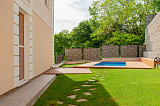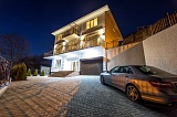 Площадь земельного участка – 7 соток. Благоустроены зоны для отдыха. Есть собственный бассейн. В темное время суток – оригинальная подсветка территории и фасадных частей.