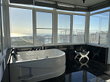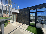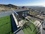 Площадь хозяйского дома составляет 258 м2. Из них 70 м2 – это эксплуатируемая кровля с прекрасным видом на морскую акваторию и территорию Олимпийского парка. Особенно прекрасен этот вид на закате, когда стадионы включают подсветку.