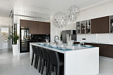 - Дорогая отделка* – натуральный камень, редкие породы дерева, авторская плитка