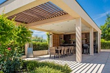 На прилегающей к вилле территории выполнен невероятно красивый ландшафтный дизайн. Непосредственно перед домом располагается большой бассейн с противотоком и джакузи. Благоустроены зоны для отдыха с ротанговой мебелью, барбекю и русской печью.