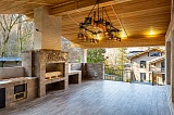 Внутри выполнен очень стильный и современный ремонт. На кухне – новый гарнитур, стойка. В зале – камин. Полный комплект всей необходимой сантехники. В комнатах установлены кондиционеры.