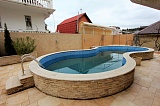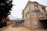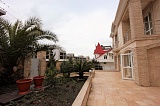 Фасады дома облицованы мрамором и природным камнем. Оригинальным дополнением к великолепному архитектурному решению служит красивый ландшафтный дизайн. Во дворе разбиты клумбы, в которых высажены редкие субтропические деревья и кустарники – олеандры, пальмы, бересклет и т.д. Также во дворе дома находится бассейн с системой подогрева воды.
