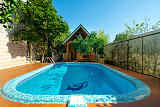 Кроме домов, на участке также есть своя собственная баня, бассейн, летняя кухня с зонами отдыха. Выполнено ландшафтное озеленение и благоустройство придомовой территории!