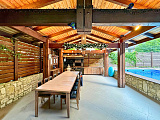 · Элегантная беседка с летней кухней и зоной барбекю — идеальное место для долгих обедов на свежем воздухе, шумных праздников и тихих романтических ужинов.