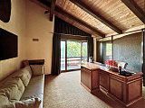 · Просторная гостиная с камином: Сердце дома, где пламя в камине танцует под рассказы самых близких людей. Высокие потолки, панорамное остекление стирают грань между уютом интерьера и величием пейзажа за окном.