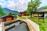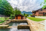 Отдельное преимущество – это наличие собственного ручья, который проходит прямо через двор дома. Все спроектировано очень грамотно. Здесь можно насладиться рыбной ловлей – карпы, форель, сазаны.