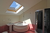 Под крышей размещены четыре Спальни с удобствами( что позволяет использовать его как гостевой дом или хостел), просторный зал с камином и выходом на открытую Террасу с прямым видом на Горы.