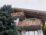 Архитектурное решение особняка идеально вписывается в общий ансамбль застройки и в самом выгодном светел выделяется на фоне естественного ландшафта. Обилие дерева в интерьере и экстерьере наполняет пространство каким-то совершенно особенным очарованием.