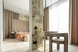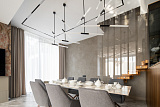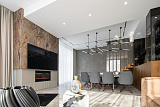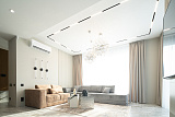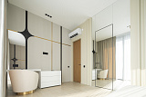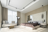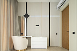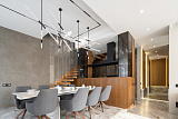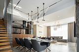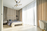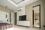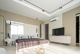 В доме предусмотрено пять просторных спален, каждая из которых позволяет создать индивидуальное и комфортное пространство. Центральная зона — кухня-гостиная, идеально подходящая как для семейных ужинов, так и для приёма гостей. Есть отдельная гардеробная зона. Благодаря большим окнам помещения наполнены естественным светом, что делает атмосферу лёгкой и уютной.