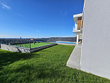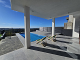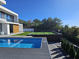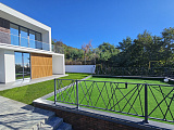 На участке расположился бассейн, с которого можно лицезреть панорамный вид на море, ландшафтный дизайн, который круглый год будет радовать глаз и просторные лужайки, которые можно засадить любыми плодовыми деревьями южного колорита.