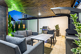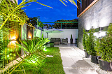 Продуманный двор, прямая ровная парковка на 3 машины, площадью 90 м², автоматические ворота и видеодомофон 4к (UHD), дорогой ландшафтный дизайн с подсветкой и автополивом (программируемый) большая барбекю-зона с угольным и газовым мангалами, бассейн 10 х 2.5 метра, лаунж-зона, видеонаблюдение 4к (UHD) по участку и в доме, все центральные коммуникации, интернет (оптоволокно), 2 фонтана (излив и 2.5-метровый арочный водопад из авиационного алюминия). Так же на участке установлена профессиональная система отведения ливневых вод, способная защитить участок и дом практически от любых природных катаклизмов.