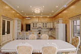 В доме выполнена чистовая отделка, спланировано 10 спален с индивидуальными санузлами, кухня-столовая, большое количество хозяйственных помещений и помещений для обслуживающего персонала, внутреннее помещение SPA с бассейном и сауной, а также большое цокольное помещение свободной планировки, которые предполагается использовать под большой гараж. В доме установлена система кондиционирования и очистки воздуха. Оба бассейна с подогревами, противотоком, различными гидромассажными опциями.