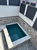 На территории участка в 4 сотки расположен роскошный бассейн, окруженный зеленью плодовых деревьев, создающий атмосферу уюта и гармонии.