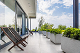 Попадая сюда впервые, первое, на что невольно обращаешь внимание – это стильное архитектурное решение, дополненное детально продуманным ландшафтным дизайном. Строгая геометрия фасадных линий дополнена южной субтропической зеленью. Это великолепие нужно увидеть лично. Кроме этого, к перечню важных особенностей данного предложения, можно отнести следующие пункты: