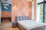 В самом зеленом и живописном районе города расположился дом в современном стиле. Архитекор и застройщик максимально удачно вписали дом в район с сложившейся застройкой. Проект дома интересный и стильный. Высокие четырехметровые потолки, просторные комнаты и спальни подарят ощущения легкости и пространства будущим владельцам. В доме имеются четыре спальни с собственными санузлами и местами хранения. Большая кухня гостиная с выходом к бассейну и гриль зоне. Так же обустроена эксплуатируемая кровля с видом на море. Для автомобилей предусмотрен паркинг на три автомобиля. Соседство составляют преимущественно новые и современные дома в стиле шале или классика. Дом выделяется на фоне многих предложений хорошей дорожно-транспортной сетью и насыщенной социальной инфраструктурой.
