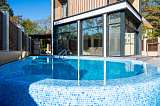 остеклением и централизованными коммуникациями. Есть собственный бассейн с подогревом воды. Подробнее