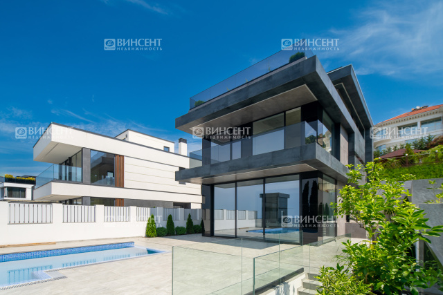 Вилла расположена на склоне, за счет этого застройщиком грамотно освоена вся территория: присутствует просторный гараж, над ним гостевая квартира и все это не занимает место на участке за счет рельефа местности. Благодаря этому получилось сохранить потрясающие видовые характеристики с нулевой точки участка. В доме выполнена грамотная планировка, начинается прокладка инжинерных систем и выполнение комплексного ремонта.